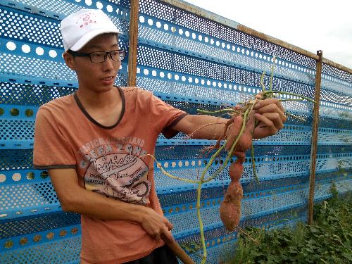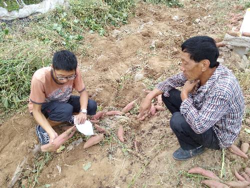 10月2日下午三点,一行人统一骑自行车踏上前往鸿樱合作社的路。到达合作社,恰逢管理员与工人们一起收番薯,队长与管理员交流后,队员接过锄具进行农活实践,管理员一边指导一边讲解番薯种植常识,每看到完整的番薯从土出翻出心里就会有幸福的收获感,忙碌中也见证了番薯花的美丽,从与师傅的交流中,我们了解到“产学研”相结合的重要。对于红豆杉来讲,经过雨季的滋润,生长趋势很好,部分红豆杉已经结果实,看着比红豆杉高得多的杂草,队员心里不禁担忧与迷惑,管理员以专业的角度解释“它们各自吸收所需物质,不存在很多的问题,并且等到来年它们又是天然的化肥。”活动期间,一行人与管理员热情交流,除却活动内容一行人与管理员分享多样假期,带来炎热中的一丝凉爽。