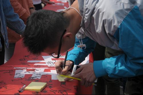 此次活动持续了两个小时,从中午十一点开始,实践部全体成员和来自各个年级的志愿者们在西雕前拉起横幅,发放荧光棒,呼吁经过的同学积极参与“地球一小时”活动,让同学们在横幅上签下自己的名字,并在便利贴上写下他们在这一小时内打算做的事情。在这两个小时中,来往同学都十分配合此次活动,积极参与,表示他们愿意为了天空重现蔚蓝做出自己的贡献,从自己做起,支持“地球一小时”的活动。同学们有的要参加荧光夜跑活动,有的表示要“关灯,关电脑,关手机,敷个面膜”,还有的打算“不上网,去散步,动起来”,大家都十分积极。活动的最后,全体参与的工作人员一起合影,圆满结束了此次活动。